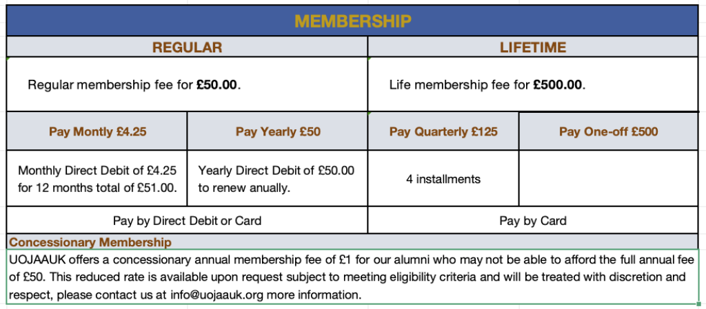 - All members have access to general alumni news and updates, newsletters, and invitations to selected networking events and opportunities to contribute to UOJAAUK initiatives.